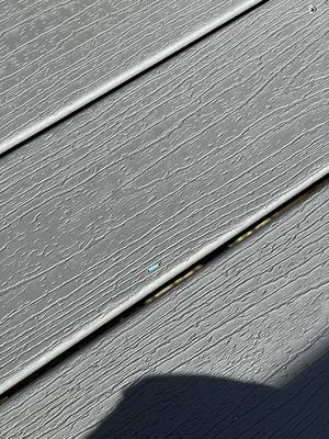We had a new deck installed in November, and the contractor did a great job with it. We noticed something weird though yesterday when we were outside enjoying a strangely beautiful February day here in Pennsylvania. Our deck "floor" consists of grey composite boards. One of the boards has a hole with a plastic-looking green colored object exposed. Is this just something inside the composite wood material that got exposed somehow? Is there anything I could or should do about this? I asked the contractor and he's a good guy, but he has no idea what this is.