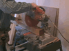 The Forstner bit has now cleared out wood down to the 1-1/2" depth and the hole saw is 1-7/8" long so now the hole saw can cut to a total depth of 3-3/8". That is just 1/8" less than the 3-1/2" length of the tube.