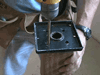 If the weld along the base of the tube is large, you may have to use a router or file and chamfer the edge of the hole cut so the anchor will seat fully on the end of the post.