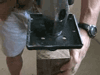 This drill has a water level with a bubble built into the handle to make it easy. Drill down at the center point about 2" deep.