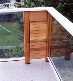 Safety glass panels are an excellent option for deck railings, especially when you have a view to exploit. Louvered panels between posts offer a very contemporary look and style and lend themselves perfectly to exterior lighting.