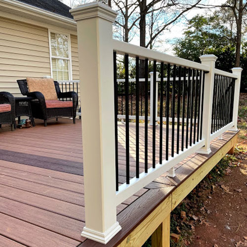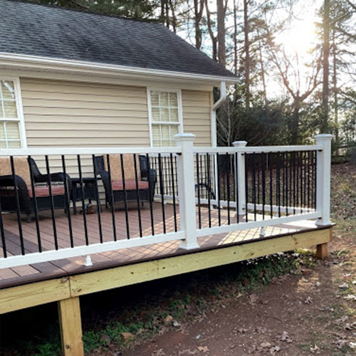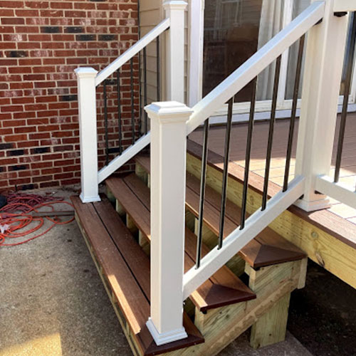 The process was going well until it came time for Jim to build the railings. Unfortunately, he did not plan far enough ahead and realized he did not have any posts coming up through the decking to build his railings. He had no choice but to find a solution to top mount his railing posts.