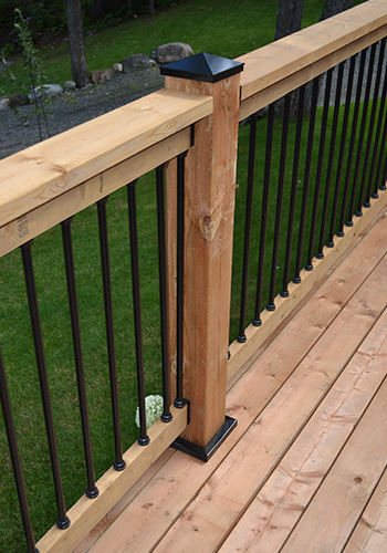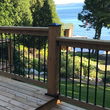 There is a ton of snow on Lake Wanapitei during the winter months so, Danny opted for our galvanized and powder coated two-piece snap fit post skirts to protect the post and give the deck a professional finished look.