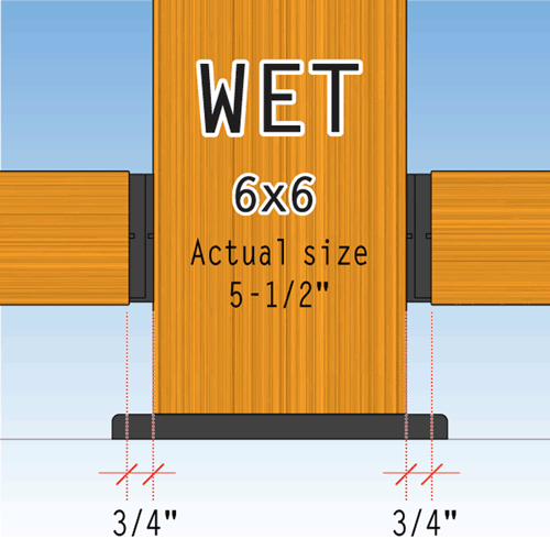 Because large posts have more moisture in them. They shrink more noticeably and so it's critical to make sure they are stable by the time you install them. A soaking wet 6"x6" treated post might shrink ¼”. If you've cut your rails to the correct gap at the start of installation and the posts shrink afterwards, you can end up with gaps between the 2"x4" and your connectors or your posts. (see image)