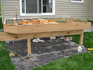 Once you have determined the height of the first level of your deck and installed the ledger board its time to think about setting the height of the supporting beams.