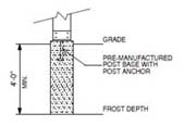Post and footings located based on accepted beam and joist spans as recommended by the American Wood Council.If your soil conditions vary, you can easily modify the layout using our embedded link in each plan for our Free Footing Calculator.