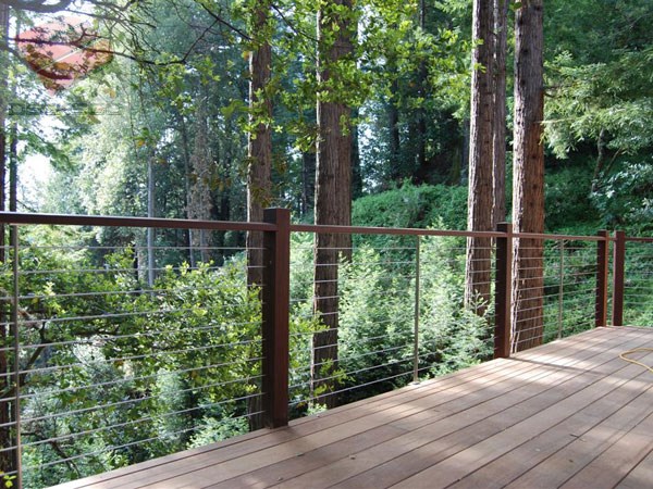 A cable railing with wood posts can be the very best choice sometimes. Just like in this situation. The thin minimalist cables give maximum exposure to the forest that makes up this beautiful backdrop. Cables rail kit made by Ultra Tec and available at the DecksGo store.