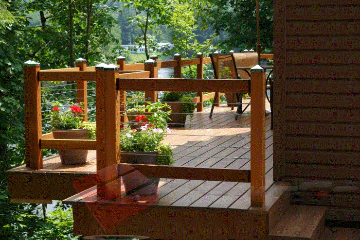 Need deck building inspiration! Well, I think you've found it! Any deck with a great view can benefit from a cable railing. This gorgeous cable railing does just that, creating a open feeling and preserving the magnificent lake view.