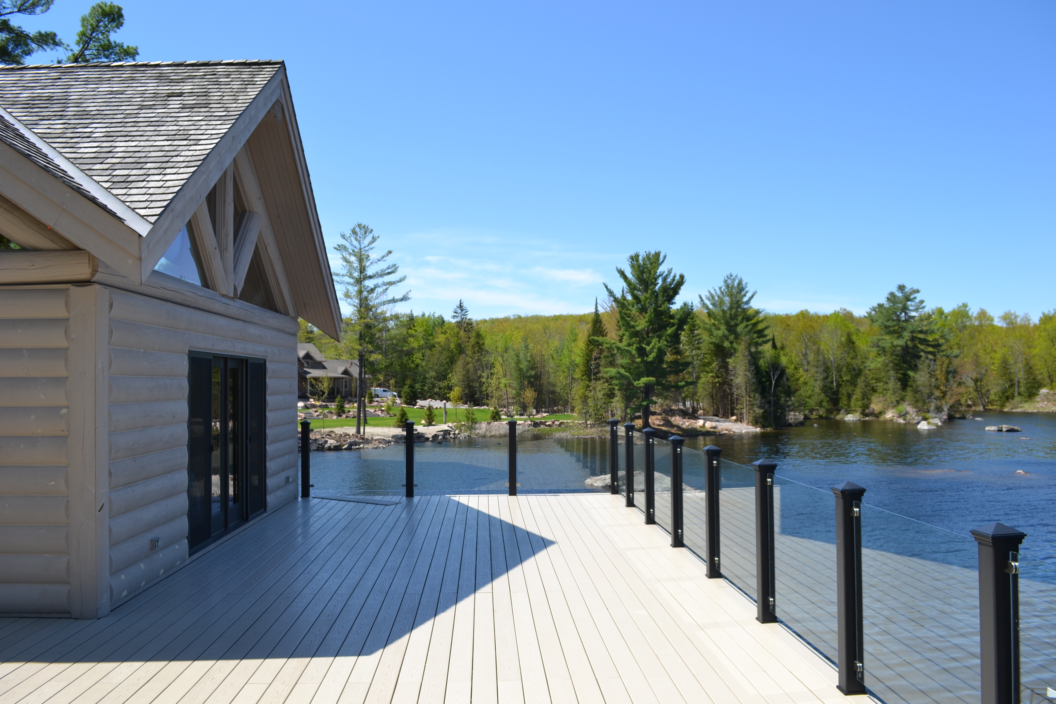 Home > Pictures of Decks > Deck Railing Photos > Lake House Post Anchor Glass Railing
