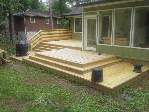This homeowner took on the challenge himself and built this attractive ground level treated wood deck supported by Deck Foot Anchor that secured support the deck to the ground but without the expense or effort of digging deep concrete footings. A small side guard rail surface mounted using Titan Post Anchors completed the look and means those posts will be secure and high and dry for decades to come.