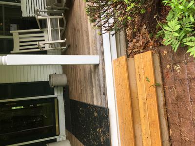 I have a two steps stairs off my porch that land on a concrete sidewalk. There is no railing so the stairs float with the sidewalk with the winter frost. Last winter the frost heave was about 1/4 inch. Now I want to attach a railing from the colonial posts on my porch to the stairs. The side walk flares as it approaches the porch to accommodate the stairs and it looks nice. I don't want to go thru the trouble of cutting up the side walk to install footers for the posts for the railings and it would look terrible.I am open to what kind of post & railing to use..I have no railings on the porch as it is only 17' high. I see many stairs with railings that just sit on the side walks. Any suggestion?.