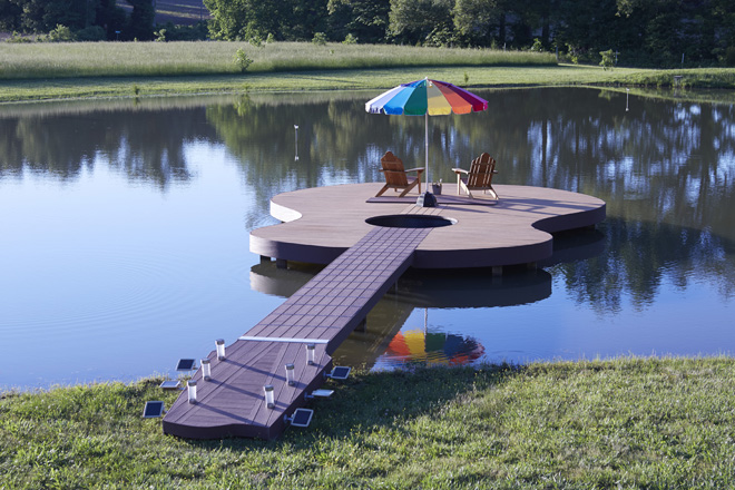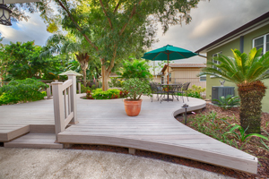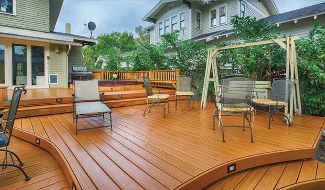 Even if you don’t go as far as something like Guitar Deck, you don’t have to be limited to a rectangular deck. High performance products like composite decking can be curved to form any number of interesting shapes, encircle a tree near the deck, or frame a garden, providing continuity between deck and landscaping.