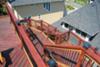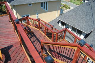 Several large orders of custom milled cedar were necessary for this deck as well as two sets of placed rock and concrete stairs.