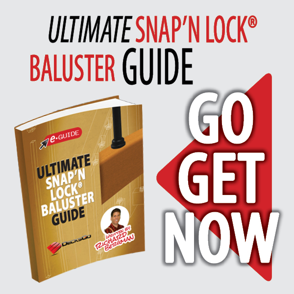 Unlike the other systems on the market, with the Snap'n Lock™ baluster system you can install your deck railings first and then all you have to do is come along and literally snap the balusters into place with speed and ease - and most importantly - with a smile on your face!