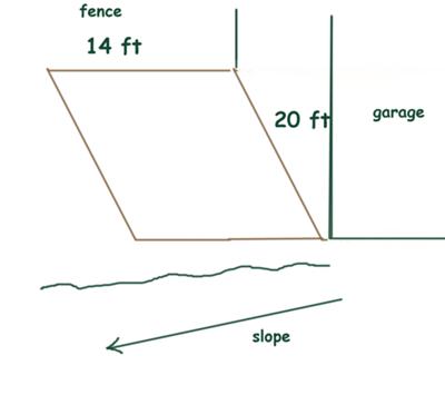 The ground in front of the open 20 foot side is fairly level. However, on the 14 foot side, the ground slopes down 6 or 7 inches (away from the garage).