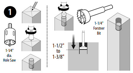 He used a Forstner bit to cut a 1.25" bore in each post rather than just a hole saw pilot cut and then drove the tube into the wood.