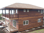 The roof line is a low slope but extends all the way over the deck to keep it dry from the rains that often come on this part of Mount Haleakala - a dormant - for now anyways - 10,000' volcano.