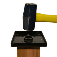 Use a 3 lb mini sledge to drive tube into post beyond depth of hole saw cut.